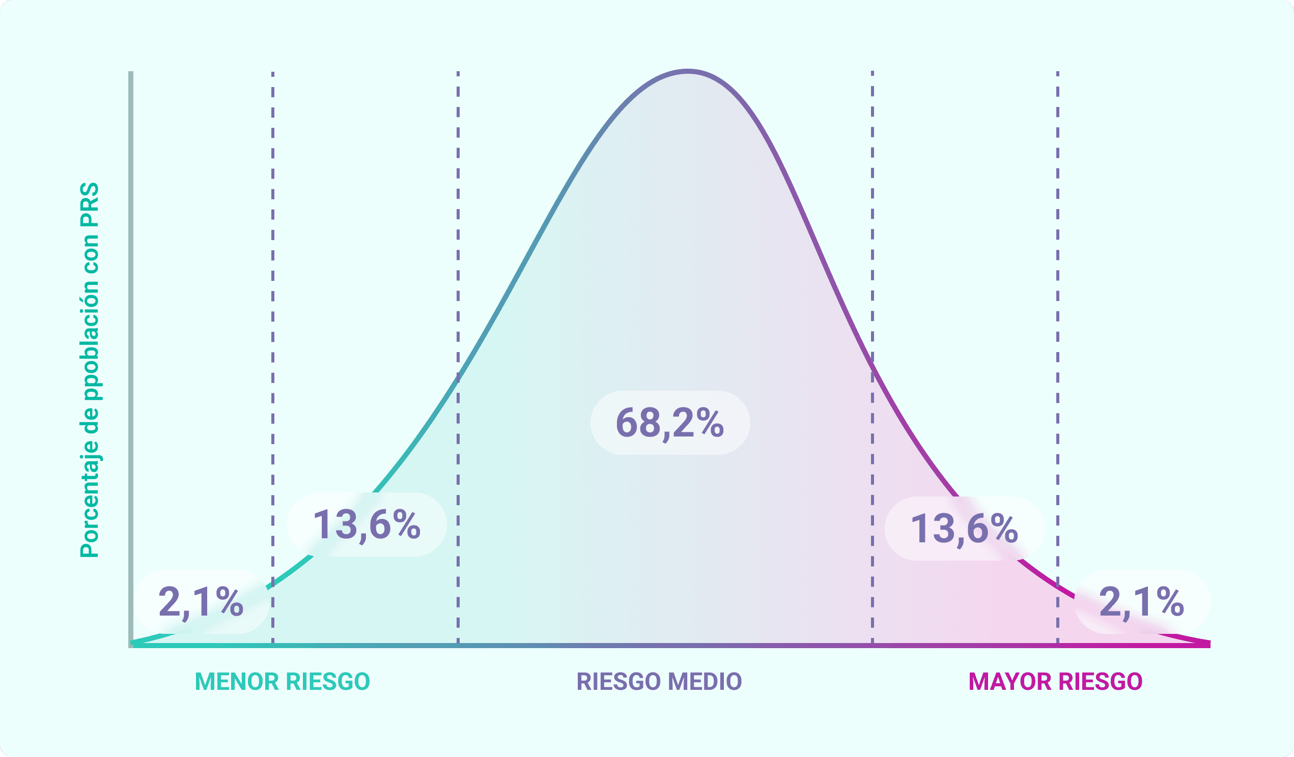 Los PRS analizan pequeñas diferencias en el ADN (variantes genéticas) y suman su impacto para generar una puntuación personalizada. Esta puntuación compara la predisposición a ciertas enfermedades con la de la población general, ayudando a identificar riesgos relativos y a tomar decisiones preventivas