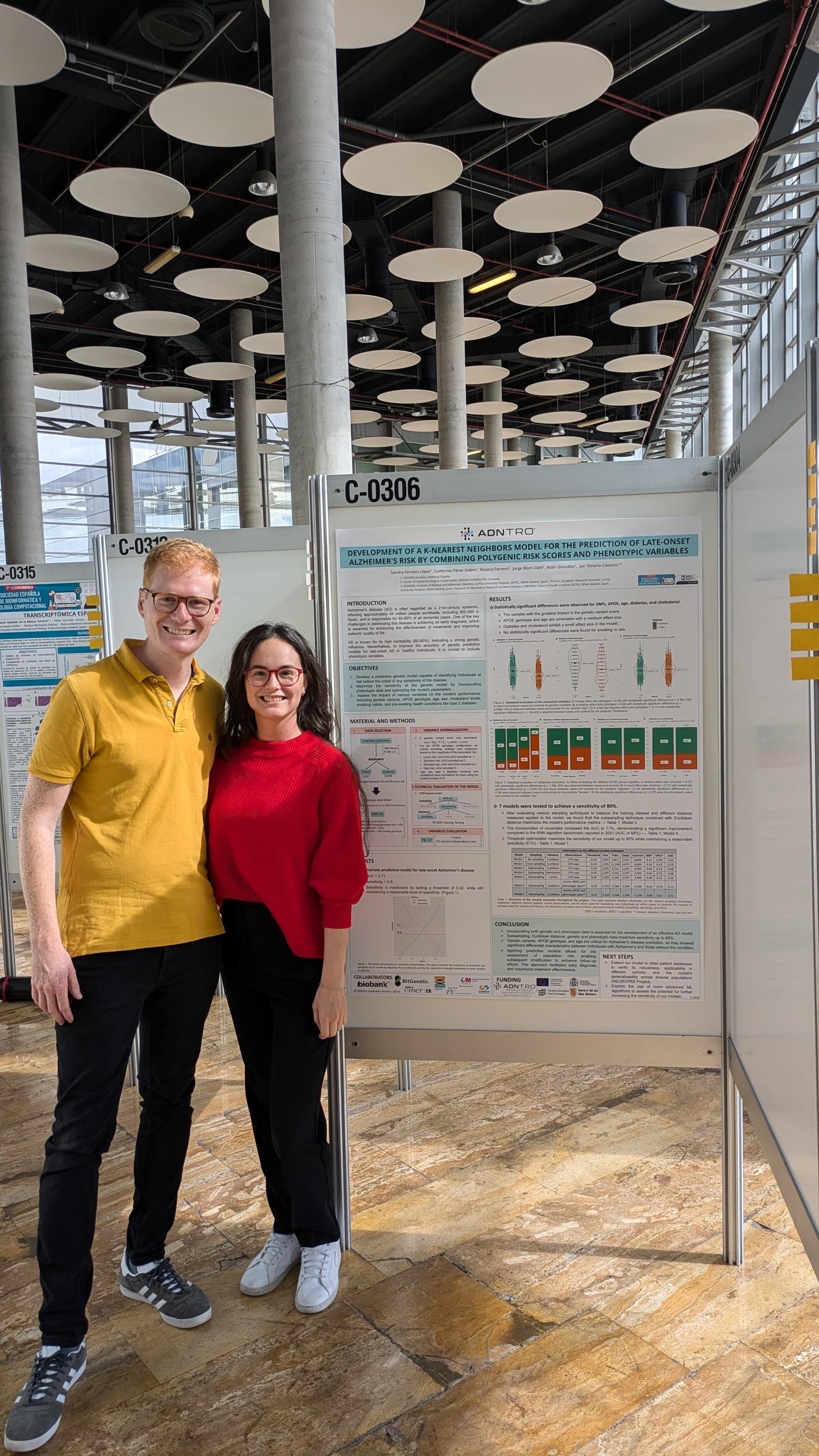 Nuestra bioinformática Sandra Ferreiro López en el I Congreso de la Sociedad Española de Bioinformática y Biología Computacional (SEBiBC, 2024) con un póster científico centrado en el desarrollo de un modelo predictivo de enfermedad de Alzheimer, basado en la integración de variantes genéticas y variables fenotípicas clínicas.